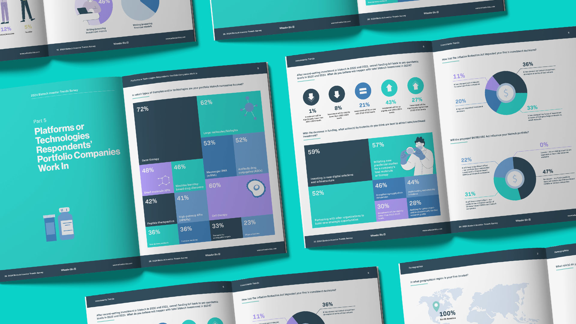 Our team gathered insights from C-Suite, portfolio managers, and market analysts from leading North American PE and VC firms focused on the biotech sector for Wheeler Bio. The survey provided a look into their investment strategies, preferences around target therapeutic areas, and expectations for valuation and exit based on size and phase when funding early-stage companies in the clinical phases of large molecule biologics development. The report was then used to generate leads for a biologics CDMO, specifically targeting emerging biotech clients.