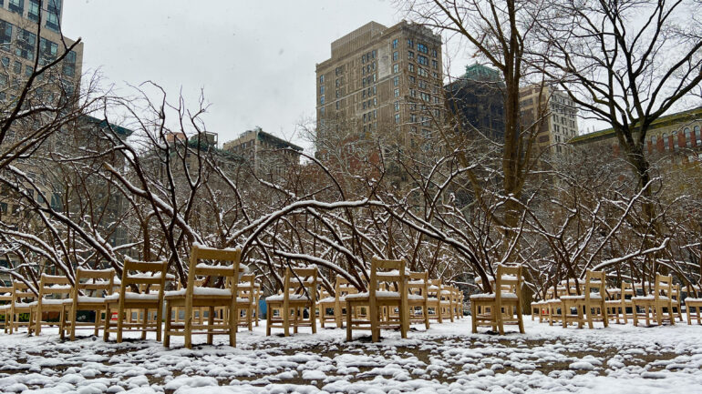 Tree growing out of chairs made of trees, the worm has turned, 1960.