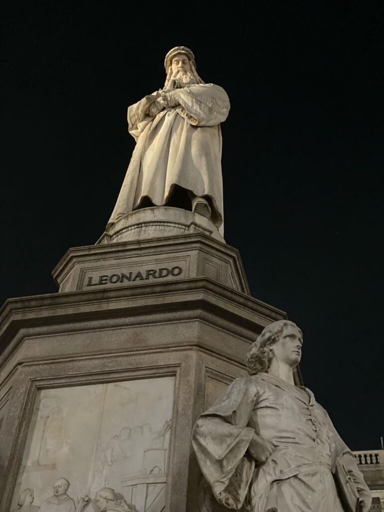 Wei makes a stop at the statue of the historic artist and inventor Leonardo da Vinci in Milan.