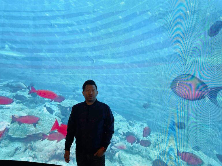 Wei Gao testing out some state-of-the-art video background technology while on a client shoot in California. Or is he just underwater?