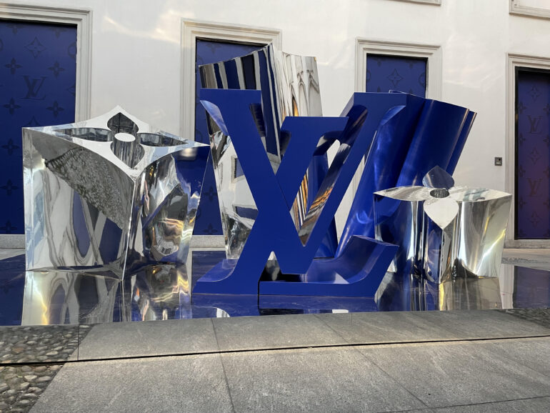 Wei visited the Louis Vuitton in Milan this weekend. The eye-catching chrome design turned heads in the Italian city.