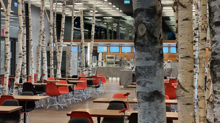 Always on the hunt for unique design and style elements, Nigel spotted Messe Frankfurt’s use of real silver birch tree trunks in one of the hall’s restaurants.