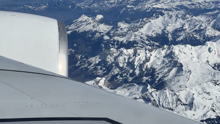 Lucas captures an amazing shot of the Swiss Alps while flying to Milan to meet Wei.