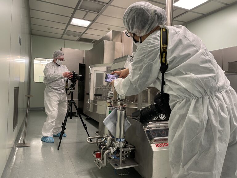David and Lucas are getting everything set up for today’s video shoot with PPD. David models for Lucas, making sure all the angles are correct.
