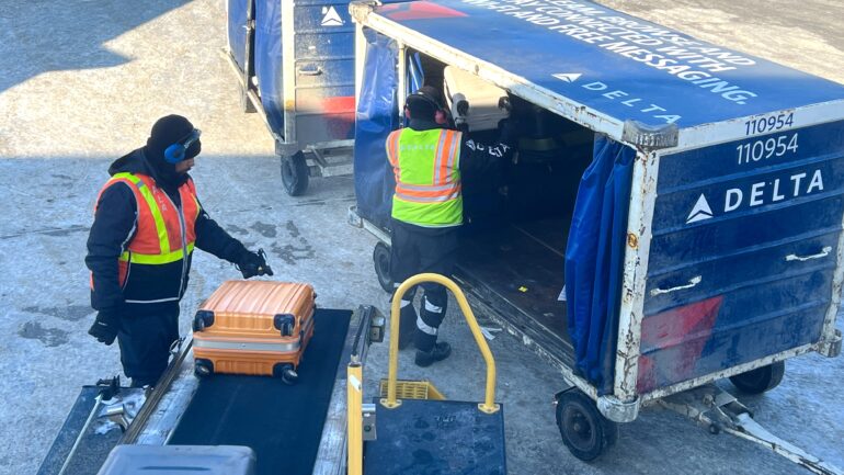 An opportune shot from the gate of Nigel’s luggage getting loaded into the plane. When your luggage is TN Orange, it’s really easy to identify.