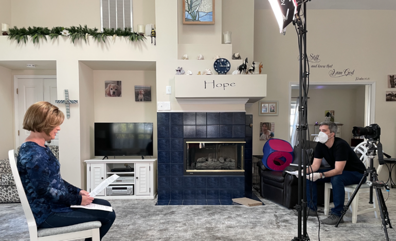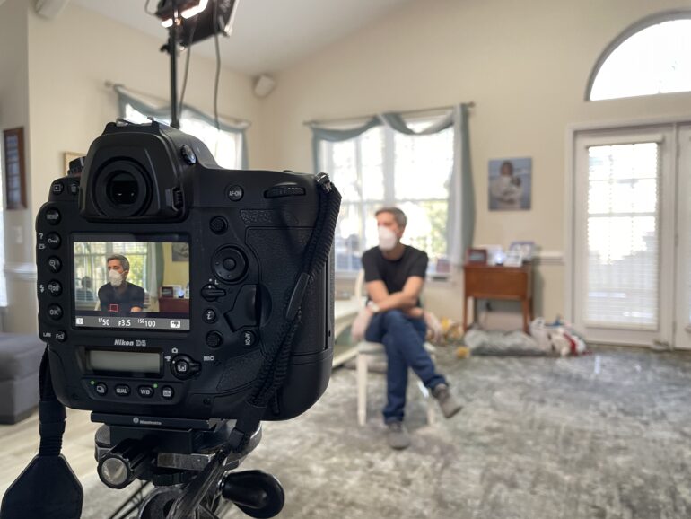 David and Lucas are getting everything set up for today’s video shoot with PPD. David models for Lucas, making sure all the angles are correct.