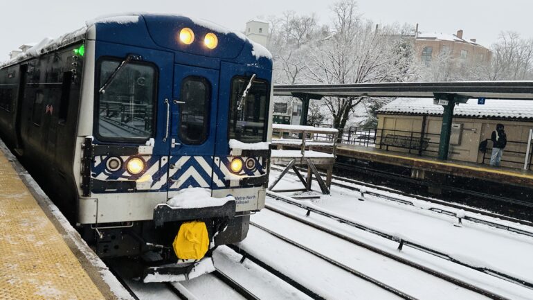 Following New York’s first measurable snowfall of the year, the boys at Metro North are working hard to get Nigel to work on time.