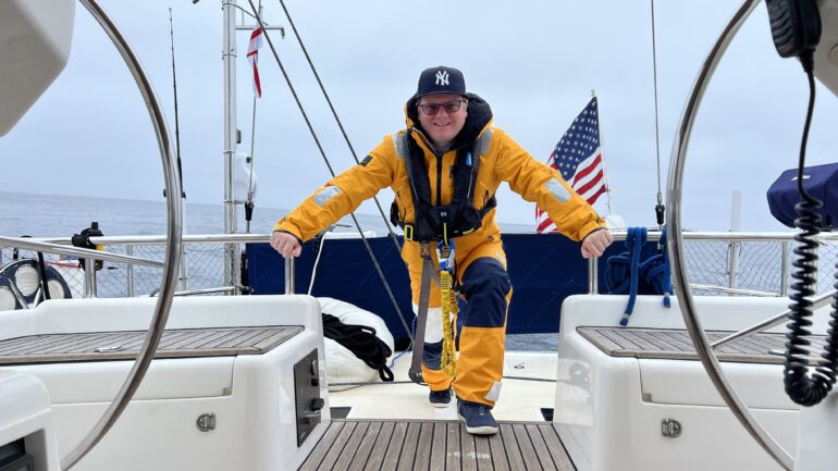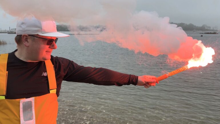 Nigel has begun safety training for Transpac and the Road to Launch. With such excellent flare form, we think he’s a shoe in for a US Sailing Membership.