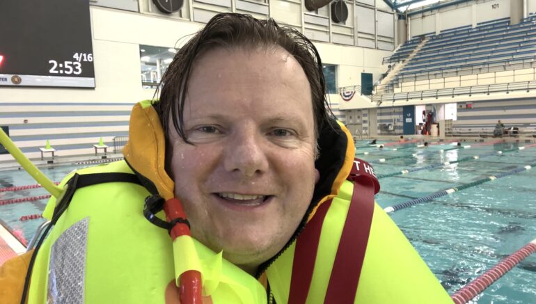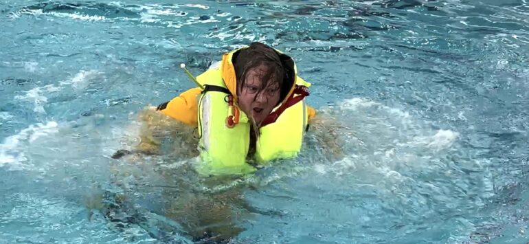 Day two of sailing safety training has brought Nigel to the life jacket use portion. Stay tuned to see how our here fares in the water.