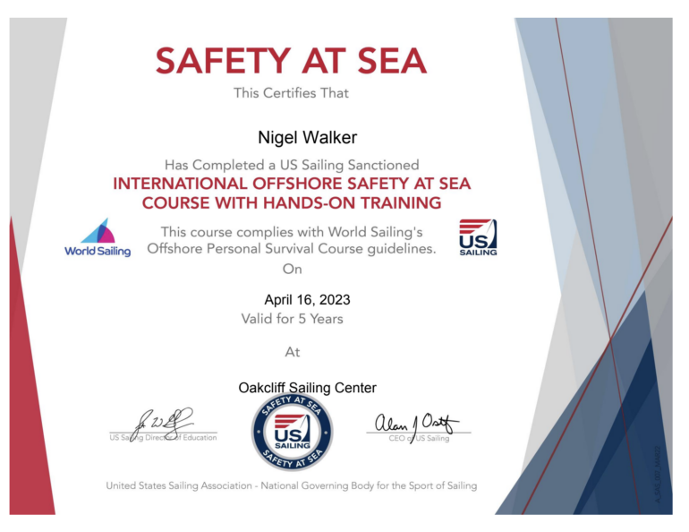 It’s official. Nigel Walker is US Sailing certified, which means we are one step closer to taking to the high seas this summer for The Road to Launch!