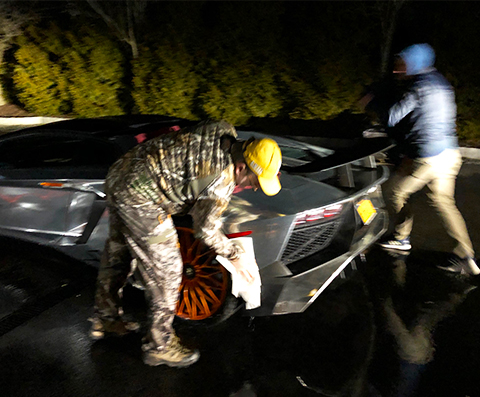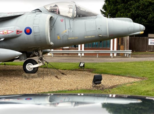 Our Mini reflects a Harrier Jump Jet at RAF Wittering on the Cambridgeshire-Northamptonshire border. No wait, the car is not that fast.