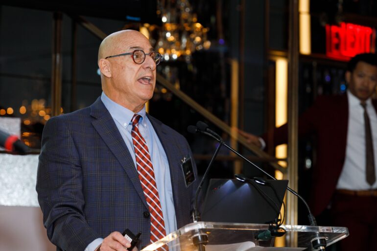 Jeff Wolf, CEO of NightHawk Biosciences, delivers an empowering speech in the Rainbow Room about Scorpius’ ambitions and goals for the coming months.