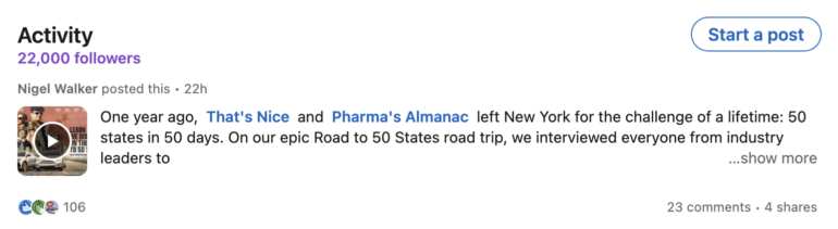 Our Founder, Nigel Walker, is rapidly approaching LinkedIn celebrity status! Cheers to 22,000 followers. Keep cranking out that content, Nigel.