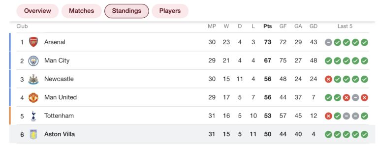 Aston Villa wins their 5th straight game in the UK Premiership just 3 points behind a European place for next season, the highest they’ve been after Christmas in over a decade.