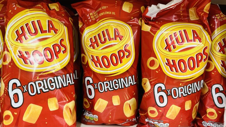 Nigel is reliving some 1970s UK nostalgia by smuggling 24 bags of Hula Hoops back into the US.