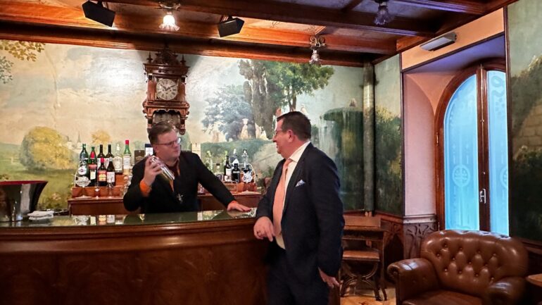Scenes from this years That’s Nice holiday outing (continued). David and Connor discussing some important agency business.