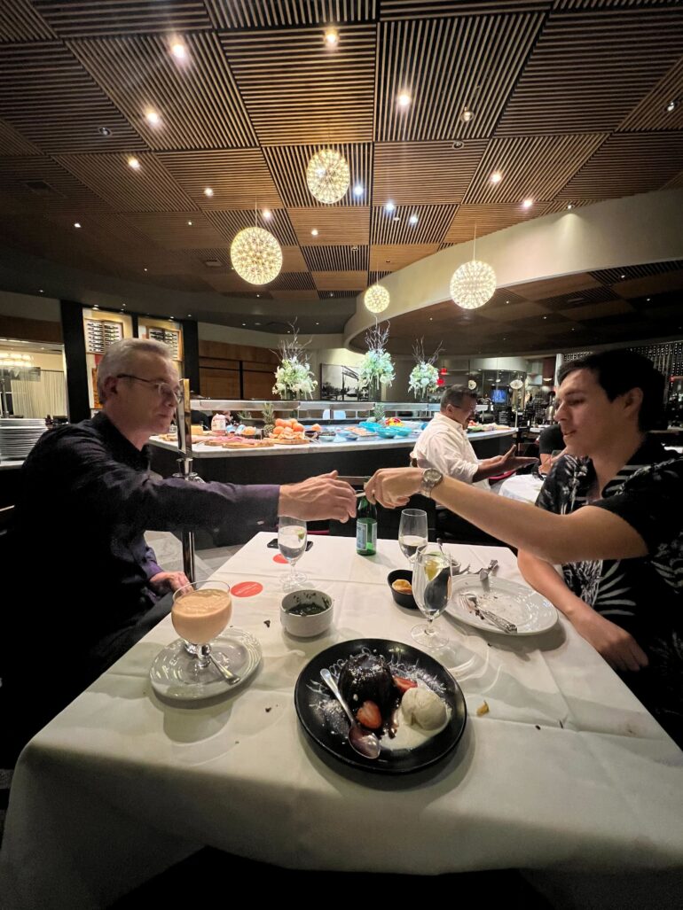 Jonny and Alejandro enjoying a well-earned feast before heading back to New York following a productive week at AAPS. Photo credit: Nancy Jin.