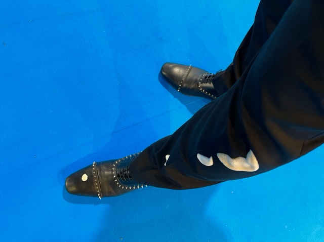 A over-excited Emilee dropped her coffee made a direct hit on Nigel’s shoes/leg. Good shot Emilee.