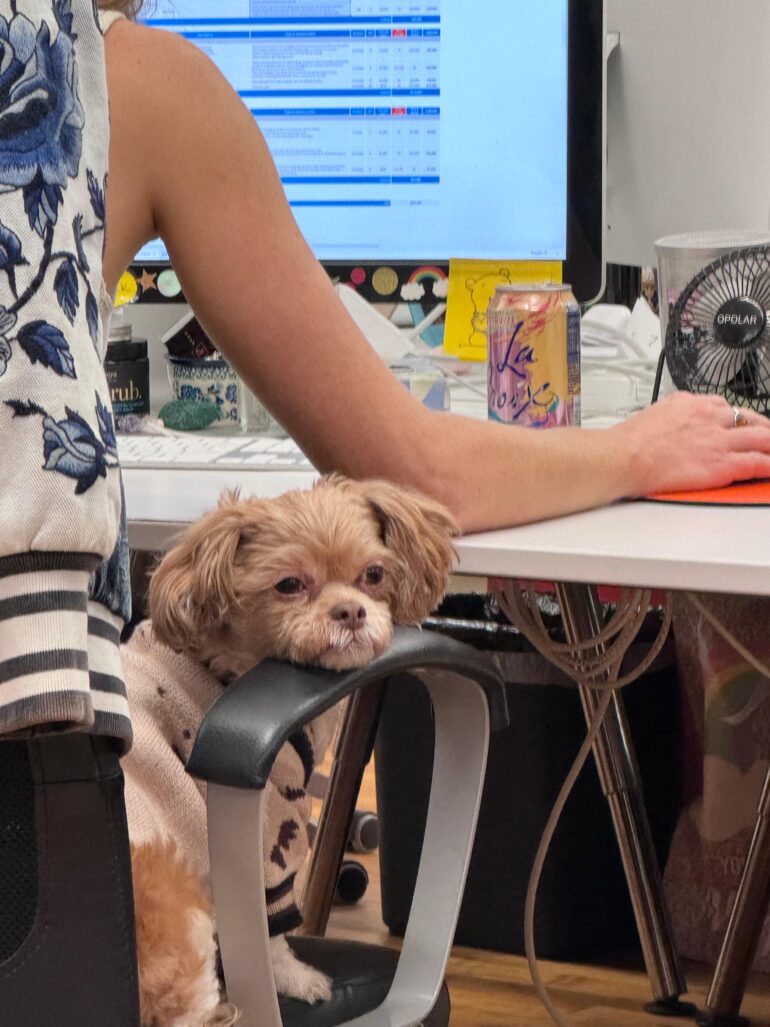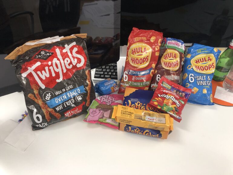 Sophie’s just arrived in the New York office this morning, meaning Mark’s desk is doubling as a London corner shop today.